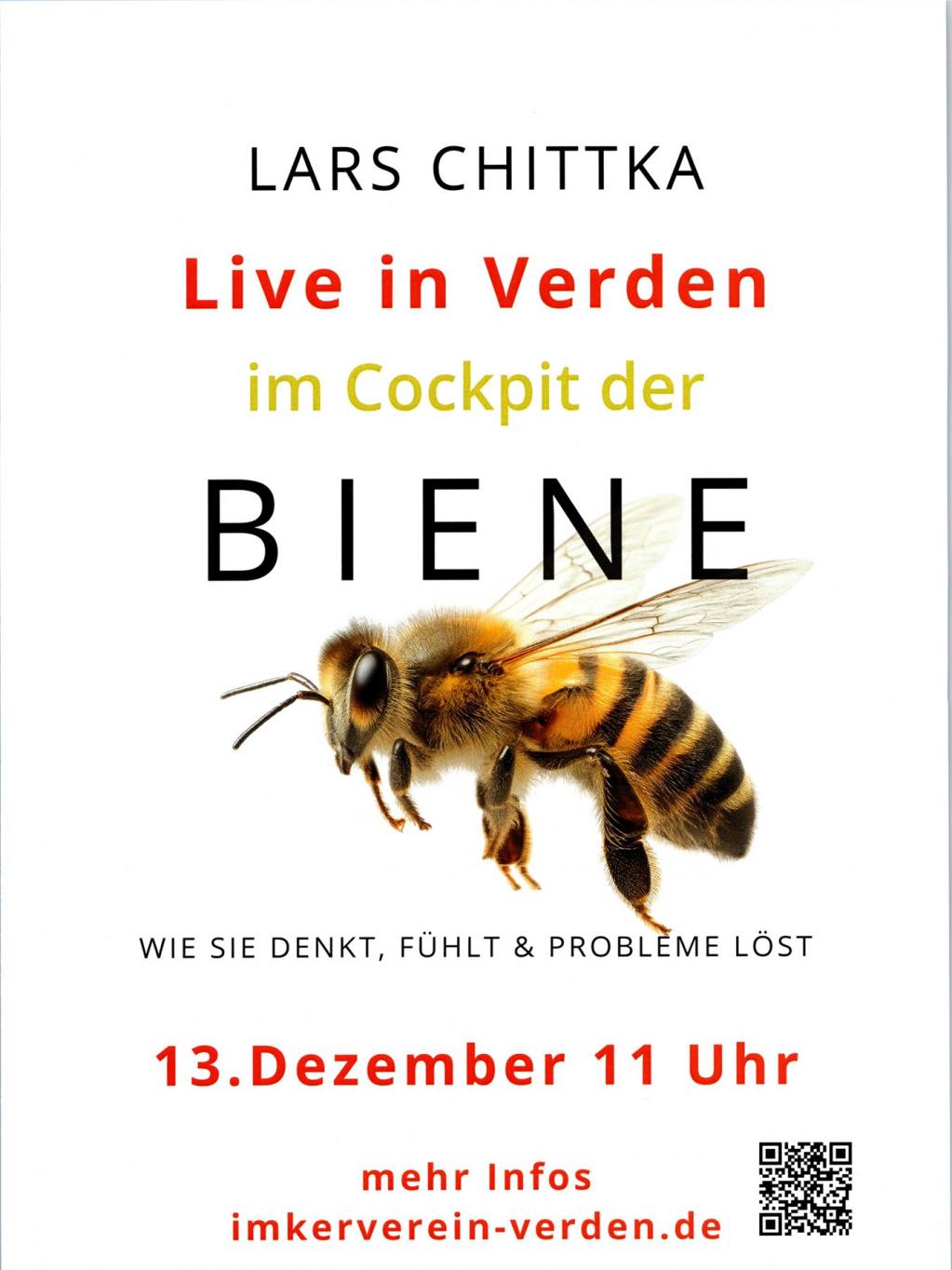 Oder sind sie instinktgetriebene Insekten, die alle gleich sind und gleich reagieren? Wenn wir Imker ehrlich sind, machen wir uns darüber keine Gedanken. Die Biene fliegt weg und wenn wir Glück haben, kommt sie wieder und bringt Nektar mit. Und da ein Bienenvolk im Sommer bis zu 50.000 Individuen umfasst, machen wir uns um das einzelne Tier kaum Gedanken. Wie denkt und fühlt sie und kann sie Probleme lösen? Hat eine Biene eine Persönlichkeit? Ist die eine faul und die andere besonders kreativ? An all diesen Fragen forscht der weltweit bekannte und geachtete „Professor of Sensory and Behavioural Ecology an der Queen Mary University of London“, Lars Chittka, seit vielen Jahren. Seine Vorträge über die Erkenntnisse, die er gewonnen hat, füllen riesige Säle. Gerade sprach er vor Hunderten begeisterten Imker/Innen auf der Weltmesse der Imkerei (Apimondia 2025) in Kopenhagen. Nun ist es dem Imkerverein Verden geglückt, Lars Chittka für einen Vortrag in Deutschland, Norddeutschland, Niedersachsen, Verden/Aller zu gewinnen. Und während er seinen Vortrag in Kopenhagen in vorbildhaftem Englisch gehalten hat, haben wir die Freude, ihn auf Deutsch zu hören, denn Lars Chittka ist Deutscher.